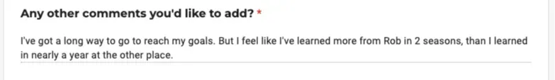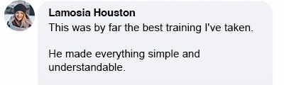 "The knowledge that I've learned from you, I know that I can continue to move forward and learn and improve. The foundation you've provided is extremely beneficial!"
