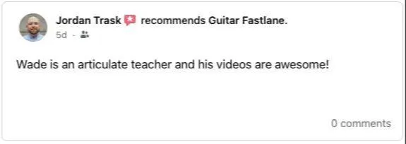I would like to take a moment and share how valuable Guitar Fastlane is toward achieving progress in guitar playing.