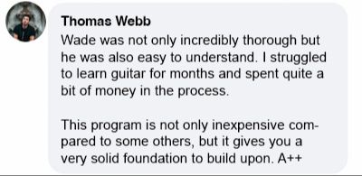 I would say Wade is a kind and nice guy. If you have something you want to do just pray, believe, show up work hard and you can do it. If you’re looking for an online guitar teacher I’d recommend Wade Collins!